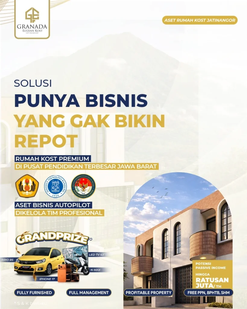 Granada Elyzian Kost Jatinangor dirancang sebagai instrumen investasi properti produktif dengan pengelolaan profesional, investasi ini berpotensi menghasilkan